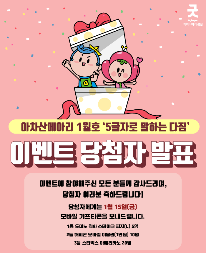 아차산메아리 2021년 1월호 '5글자로 말하는 다짐' 이벤트 당첨자 발표