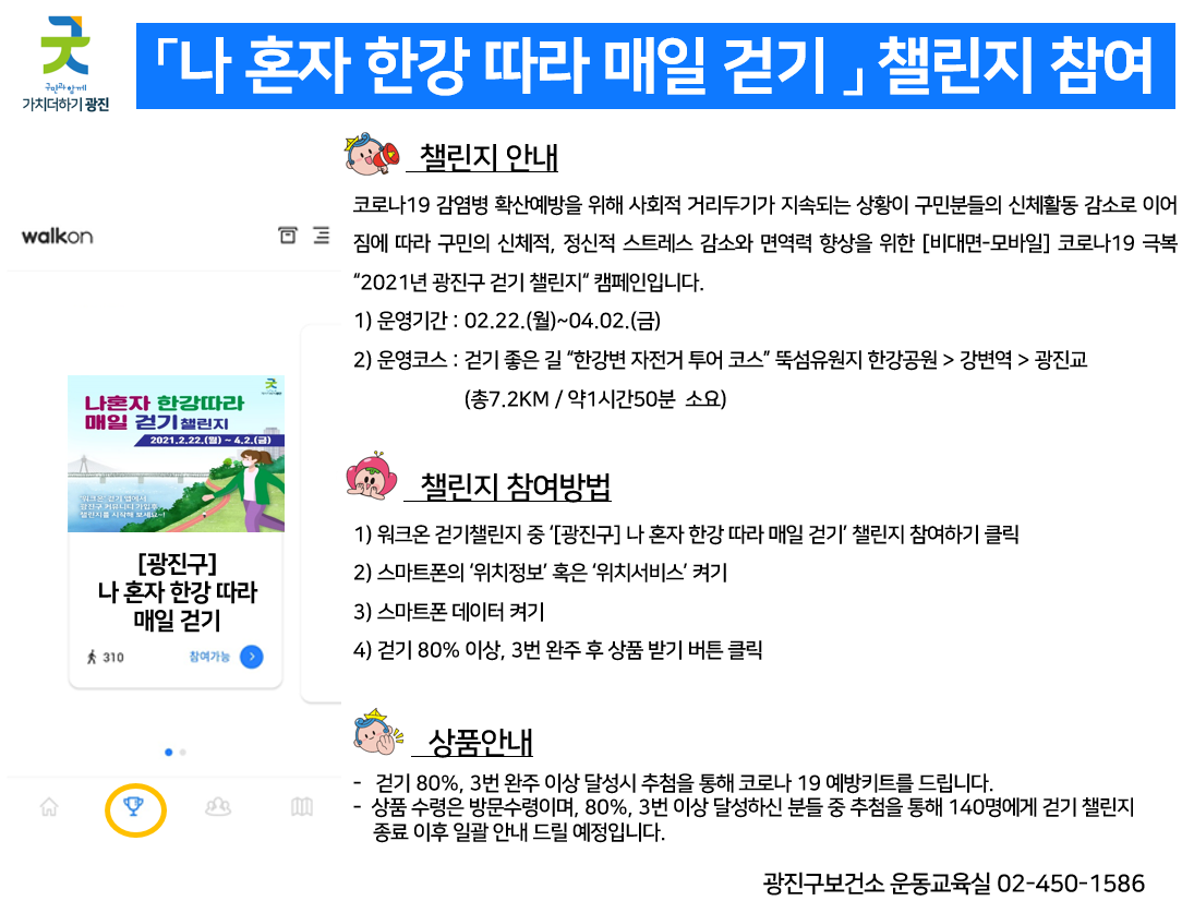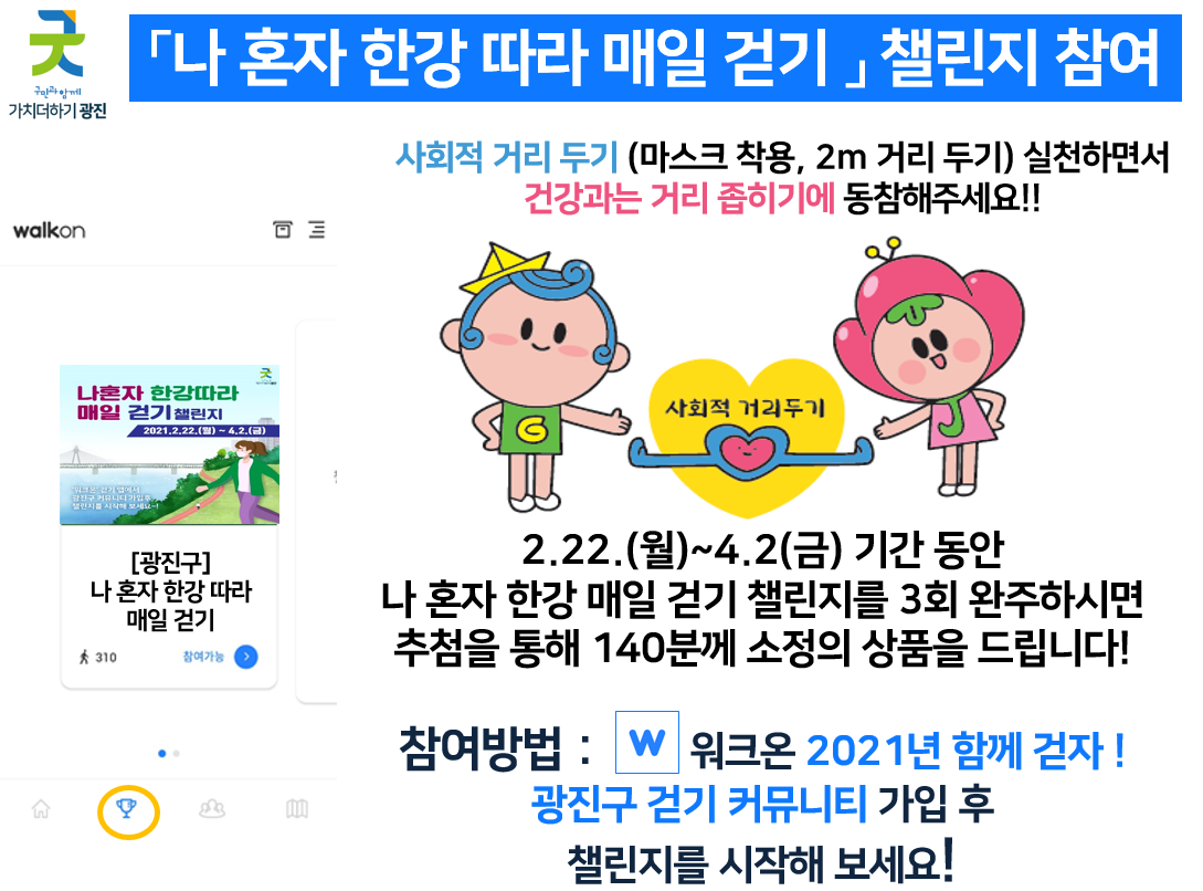 코로나 19 극복! 비대면 "나 혼자 한강따라 매일걷기 챌린지" 참여안내