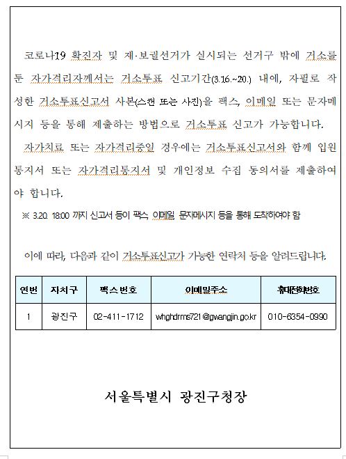 3. 개인정보동의서 1부.(자가격리자가 거소투표시 개인정보수집동의서 제출)