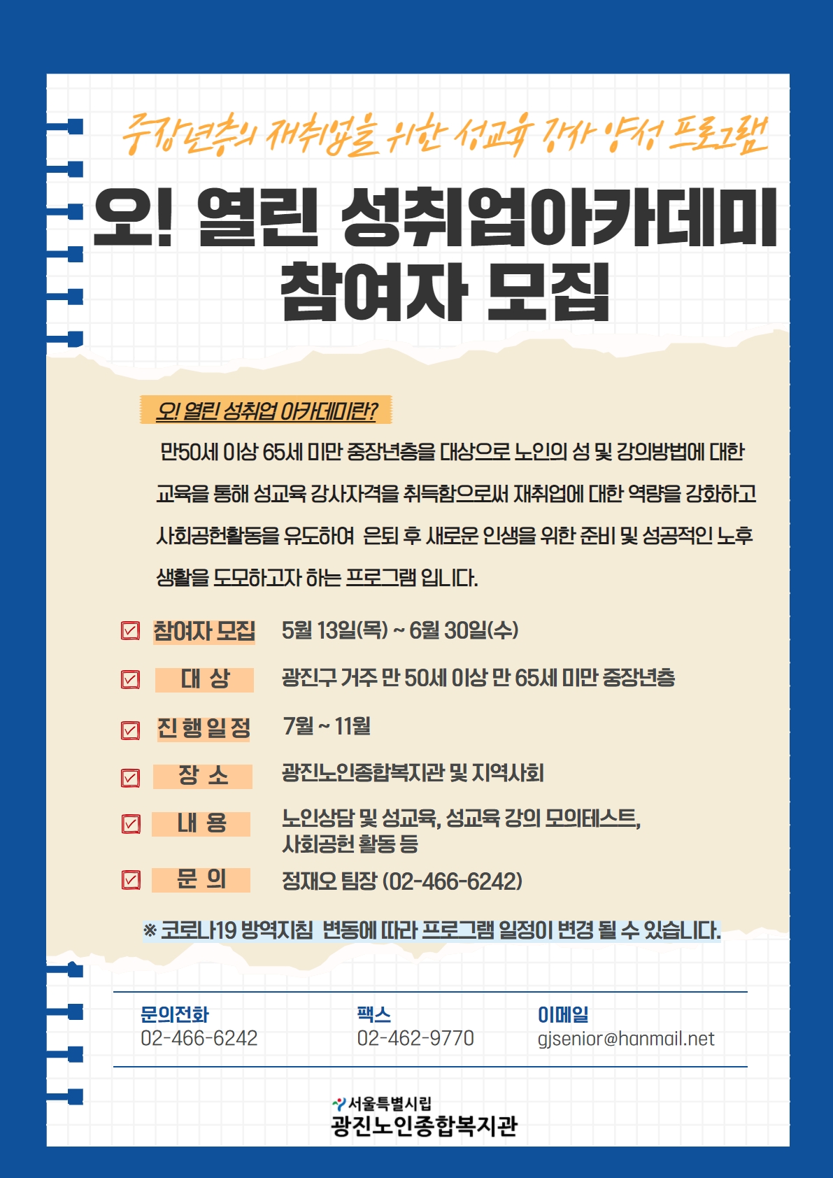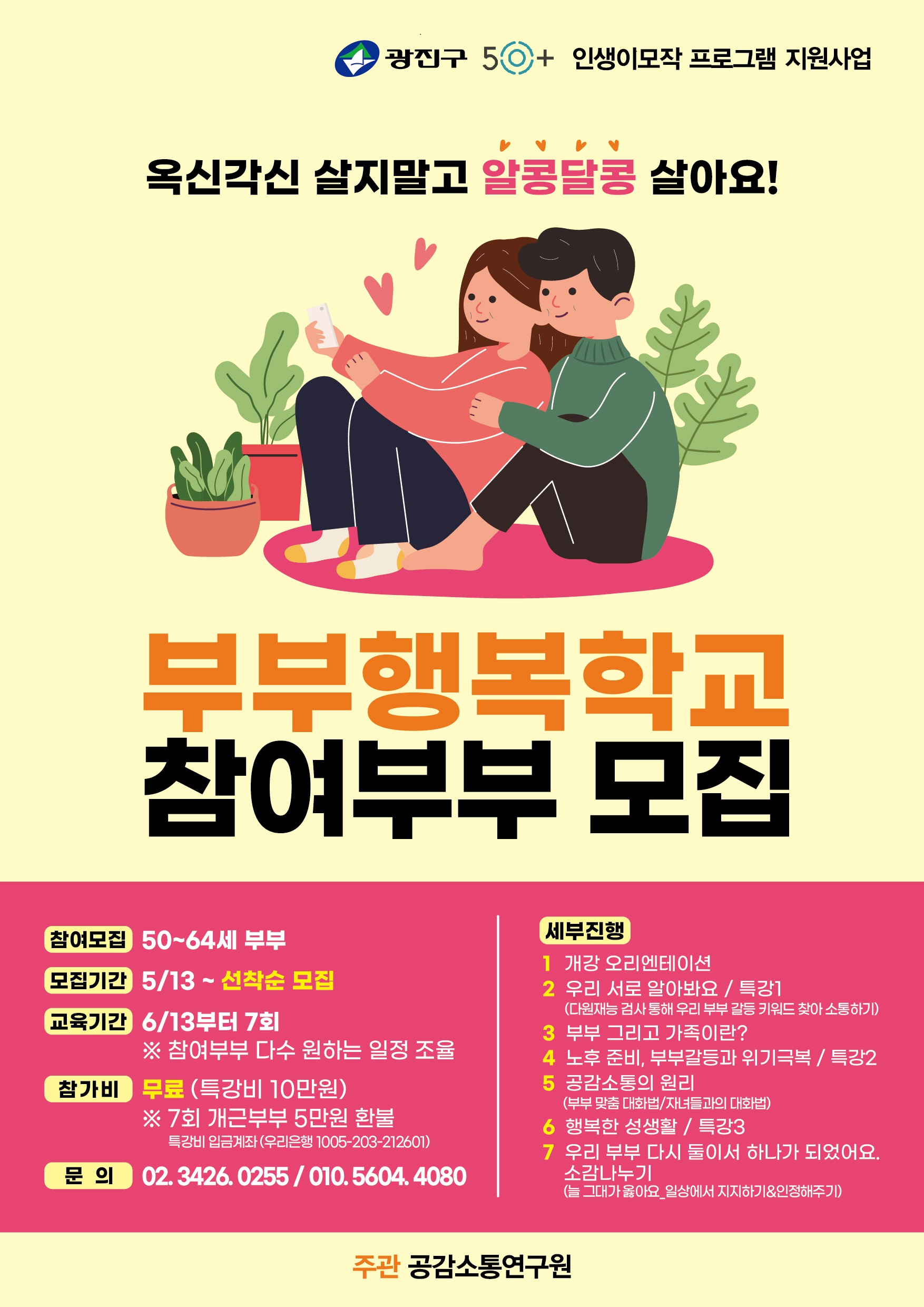 [50+인생이모작 프로그램] 부부학교 1기/성취업 아카데미/감성코칭자격증 참여자 모집중!