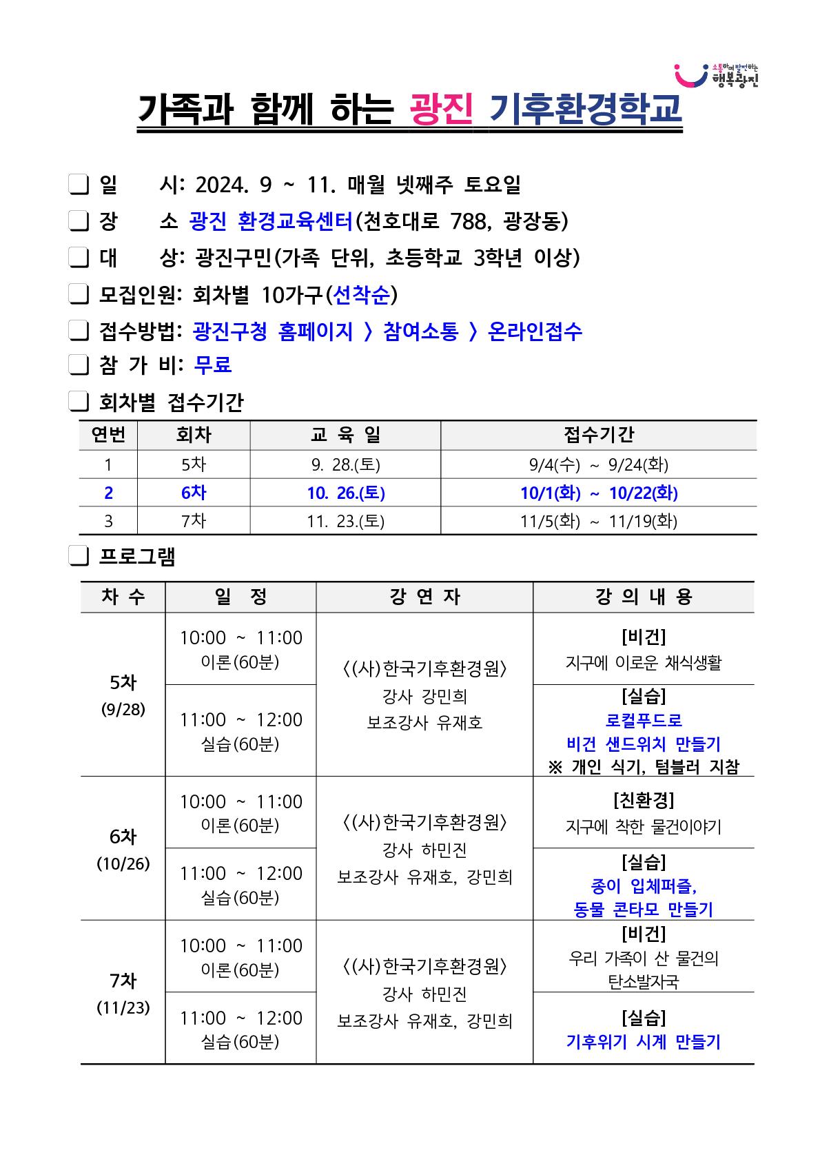 가족과 함께하는 광진 기후환경학교 참여자 모집(10월)
