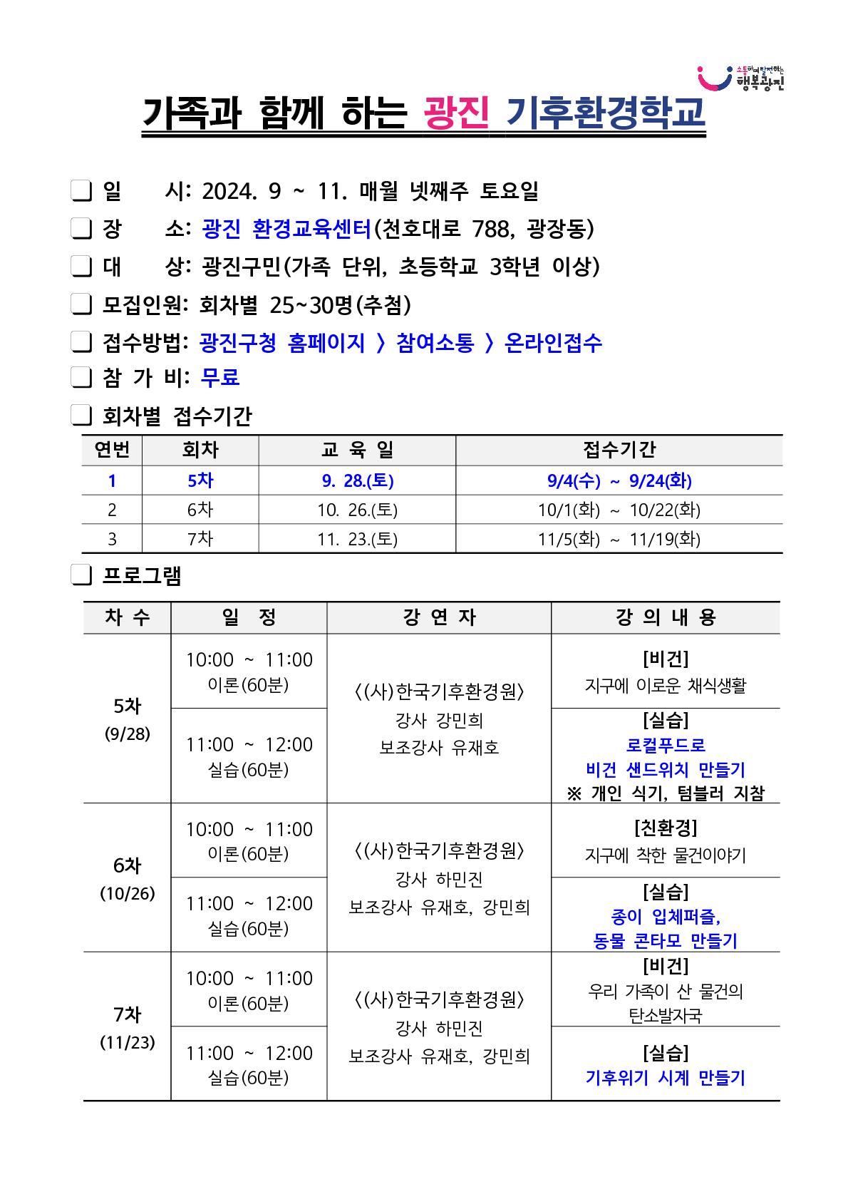 가족과 함께하는 광진 기후환경학교 참여자 모집(9월)