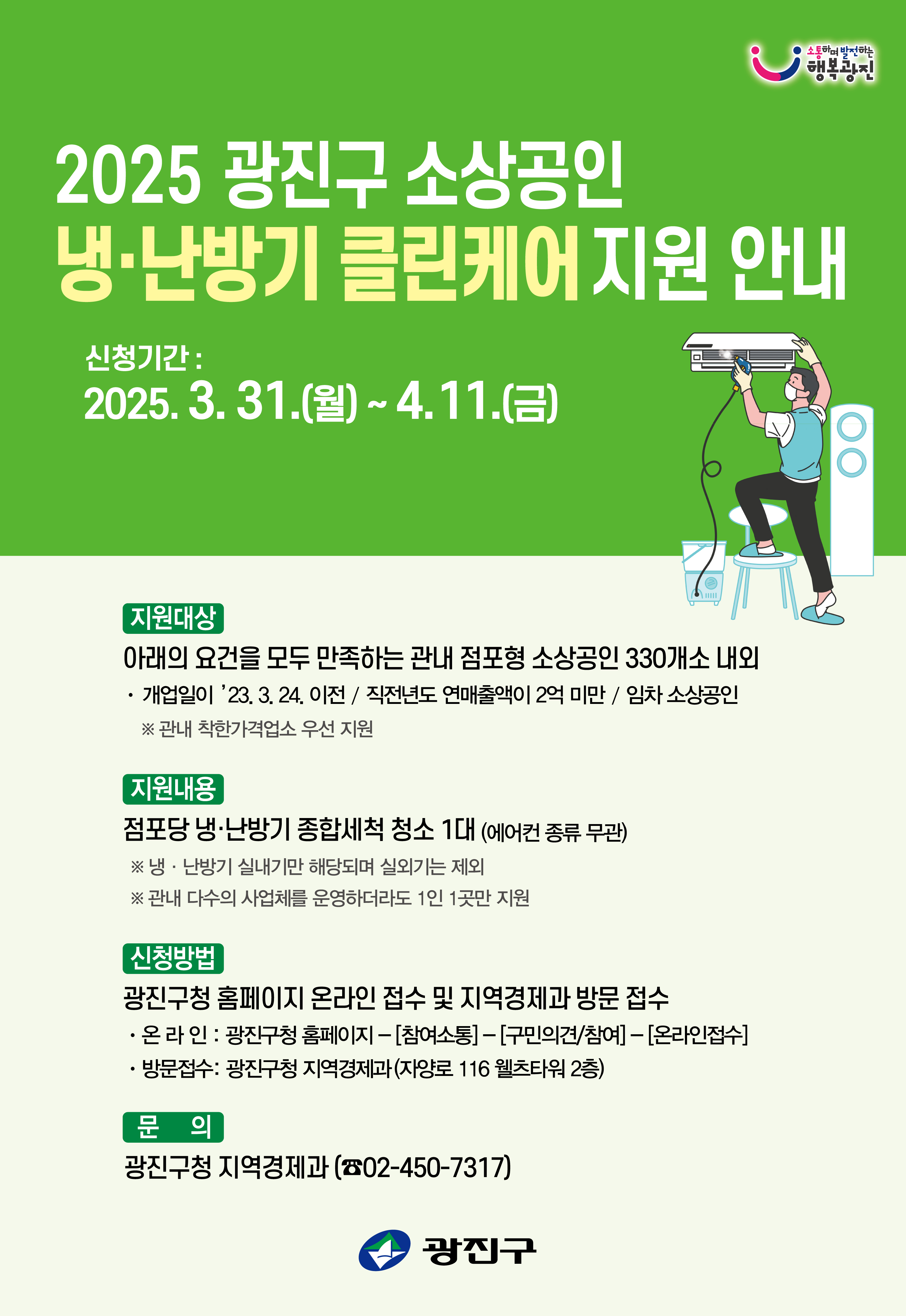 광진구 소상공인 냉·난방기 클린케어 지원사업 대상업체 모집