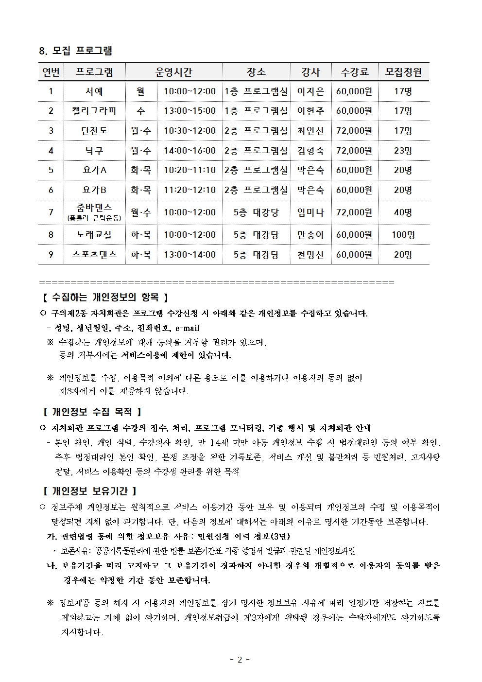 25년 3분기 구의2동 자치회관 '요가B' 프로그램 수강생 모집