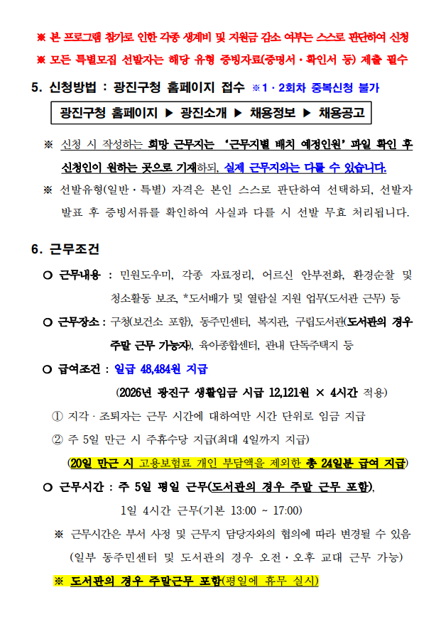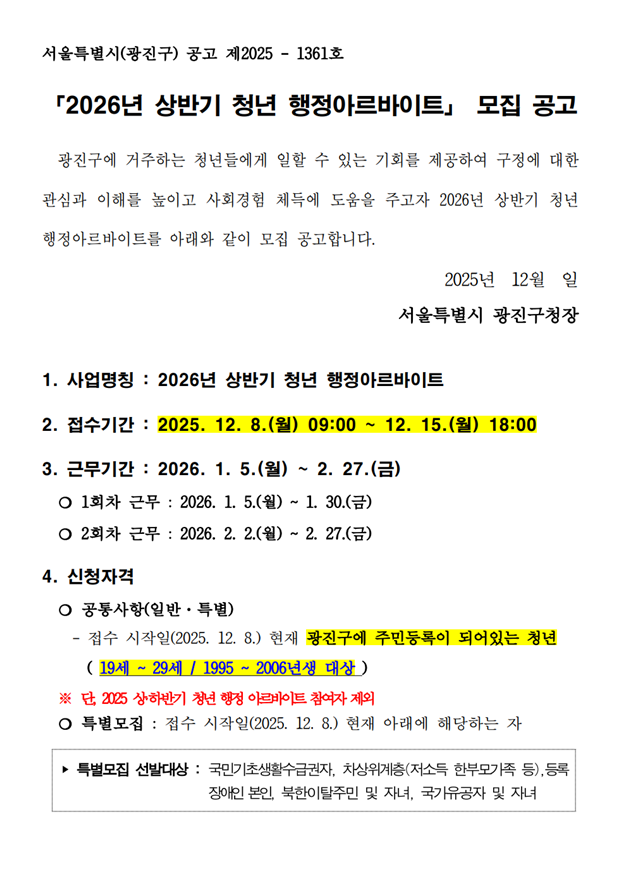 2026년 상반기 청년 행정아르바이트 모집
