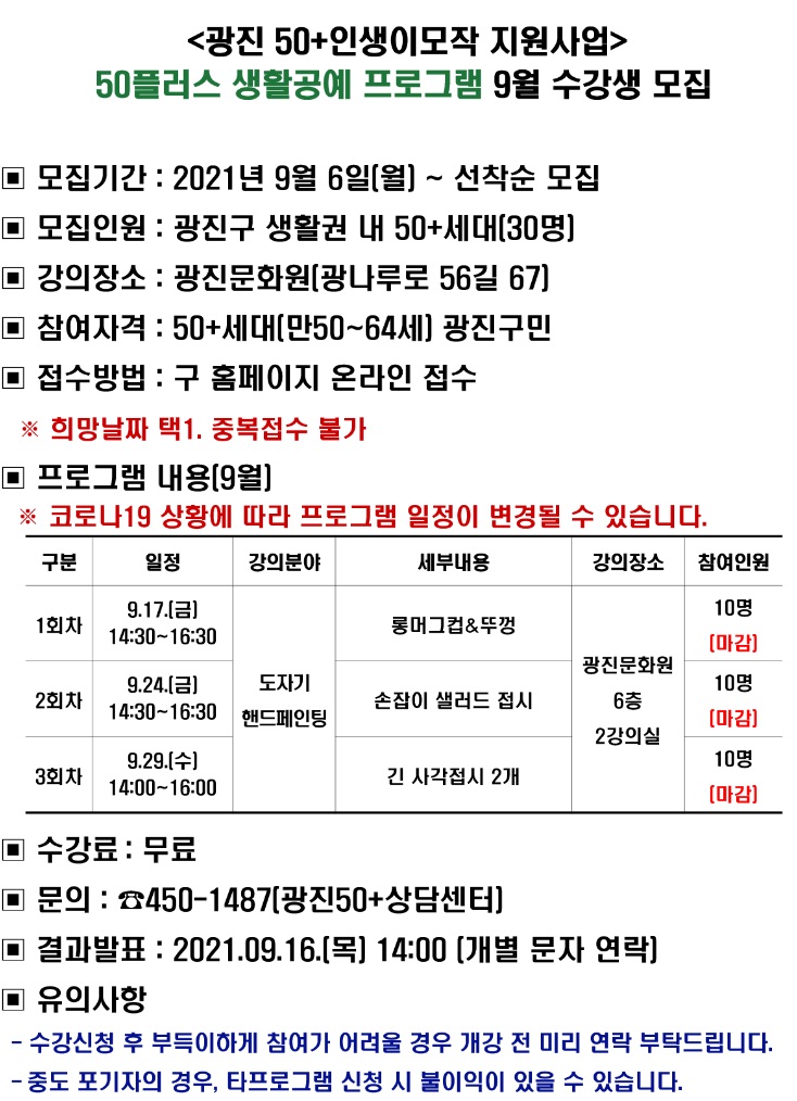 50플러스 생활공예 프로그램 수강생 모집(9월)